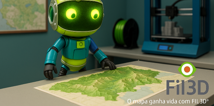 Com FIL3D®, o mapa ganha volume, textura e vida — porque o conhecimento também se imprime.